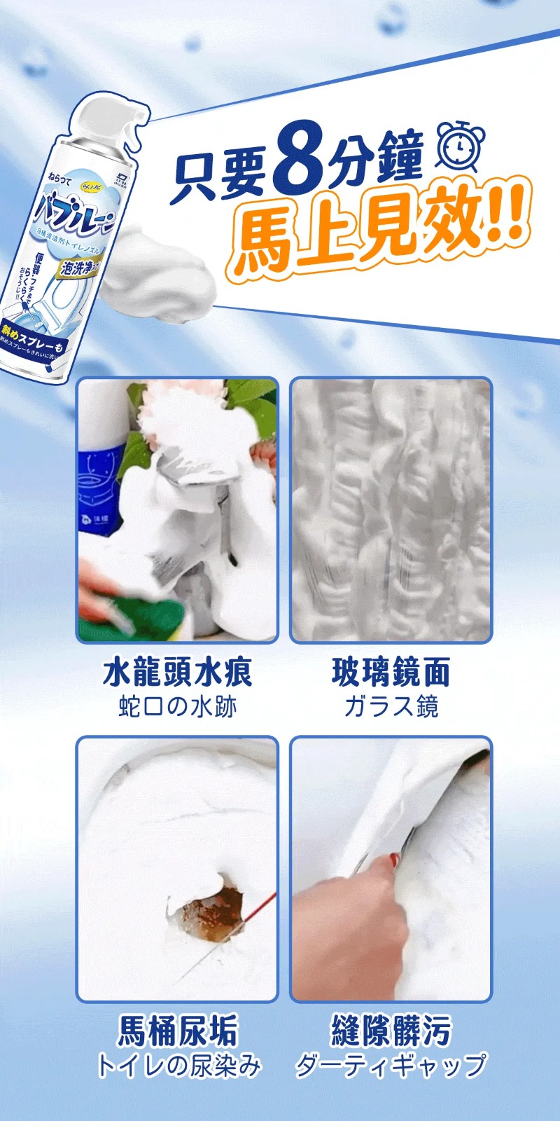 7分鐘前雪泡淨浴廁清潔慕斯 ,馬桶不刷也能亮 , 浴室清潔一瓶搞定 - 【買五送三】【MokoClean雪泡淨】8入組,團購好友分享 免運 NT$1299