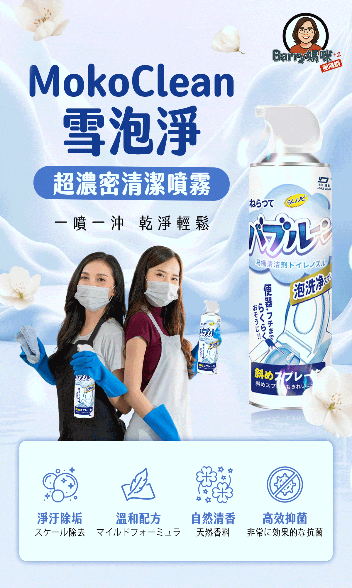 2分鐘前雪泡淨浴廁清潔慕斯 ,馬桶不刷也能亮 , 浴室清潔一瓶搞定 - 【買五送三】【MokoClean雪泡淨】8入組,團購好友分享 免運 NT$1299